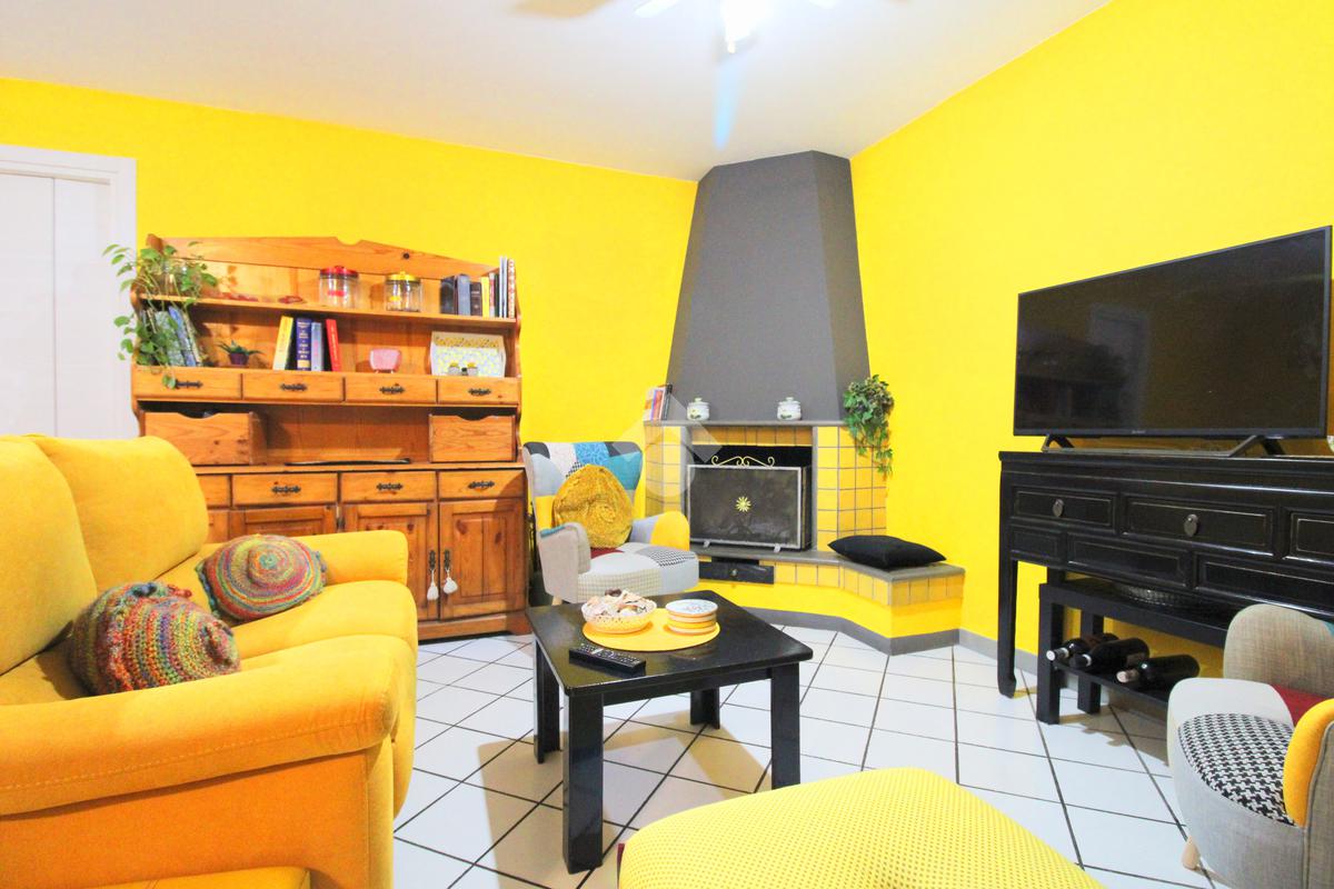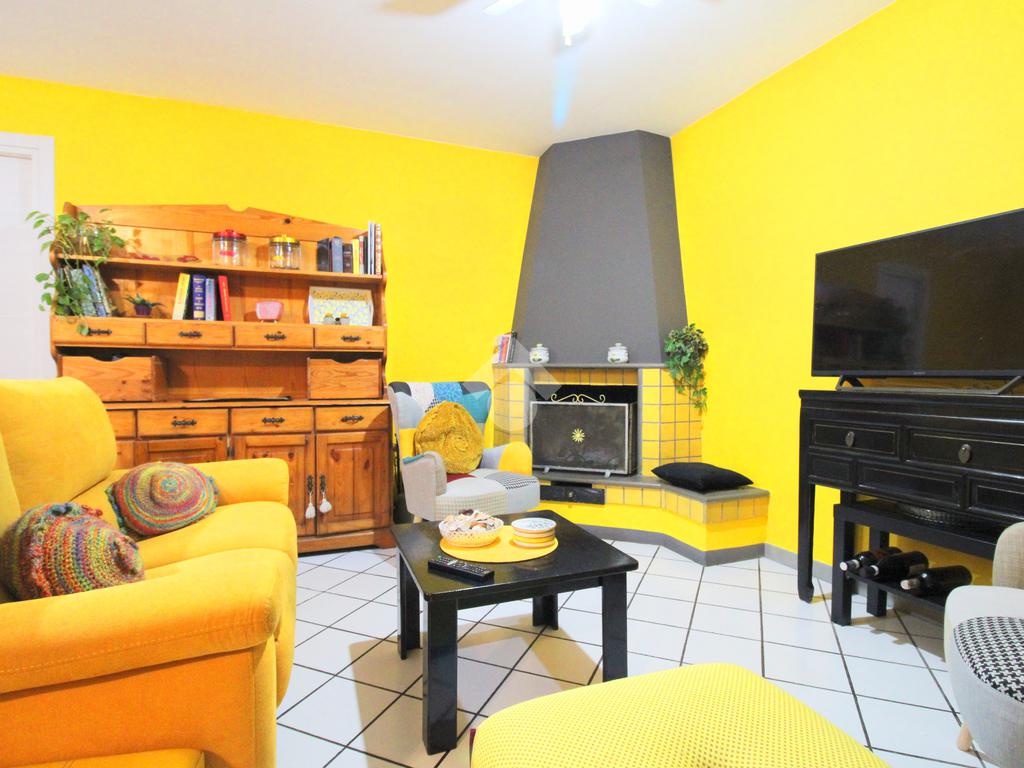 Al piano inferiore si sviluppa la zona giorno composta da un soggiorno con camino e un bagno finestrato con doccia.